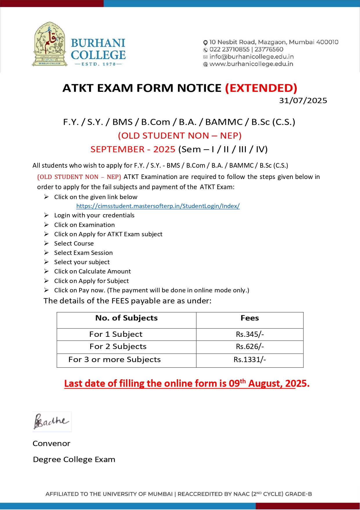 F.Y. / S.Y. EXTENDED ATKT EXAM FORM NOTICE SEP – 2025