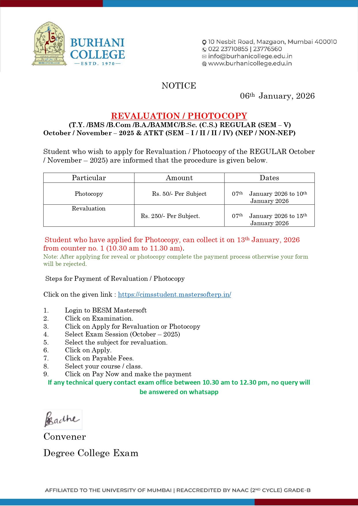 T.Y. REGULAR EXAM REVAL / PHOTOCOPY NOTICE JAN – 2026